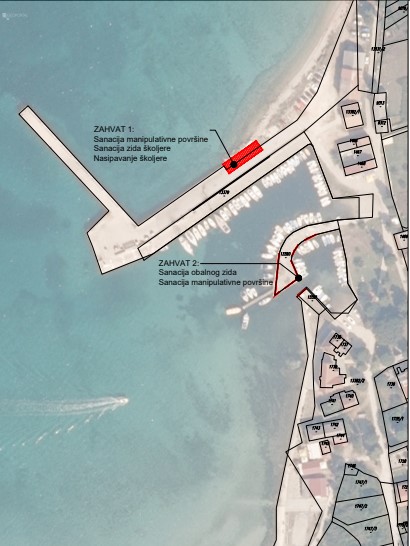 Zahvat na sjevernom gatu, uz punjenje kaverni betonom, podrazumijeva sanaciju obalnog zida u duljini od 22 metara te izradu kvalitetnije školjere. Naime, na sjevernom gatu more je ispralo dio školjere te su vidljive instalacije koje predstavljanju značajnu ugrozu za korisnike luke. Instalacije je potrebno zaštiti betonskom ovojnicom, dok će se erodirali dio školjere dopuniti kamenim materijalom.